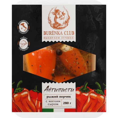 Антипасти BURENKA CLUB Рыжий перчик фаршированный мягким сливочным сыром в масле, 280г в магазинах Лента