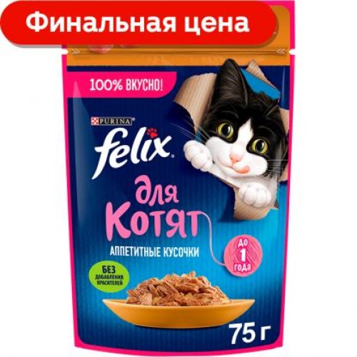 Аппетитные кусочки для котят Felix с курицей 75г в магазинах Магнит