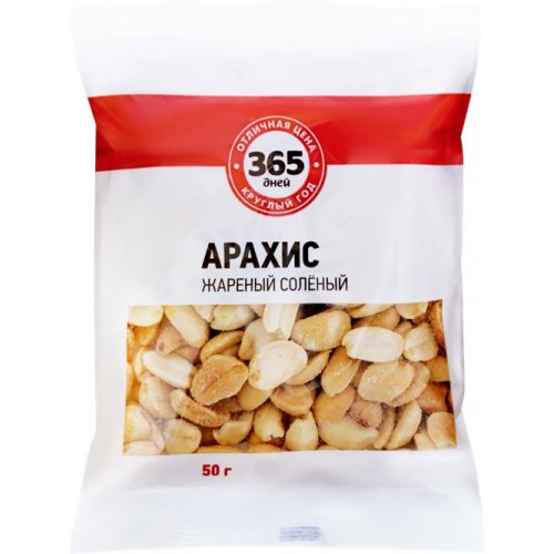 Арахис 365 ДНЕЙ жареный соленый, 50г в магазинах Лента