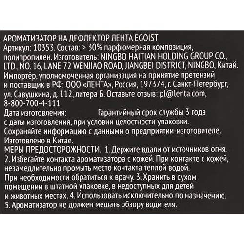 Ароматизатор автомобильный PREMIUM CLUB Prestige Egoist, подвесной, Арт. 10352 в магазинах Лента