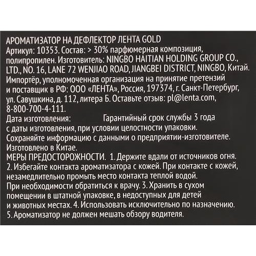 Ароматизатор автомобильный PREMIUM CLUB Prestige Gold, подвесной, Арт. 10352 в магазинах Лента