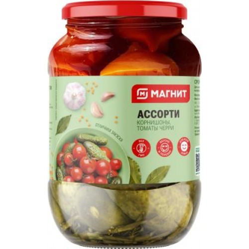 Ассорти овощное Магнит корнишоны и черри 680г в магазинах Магнит
