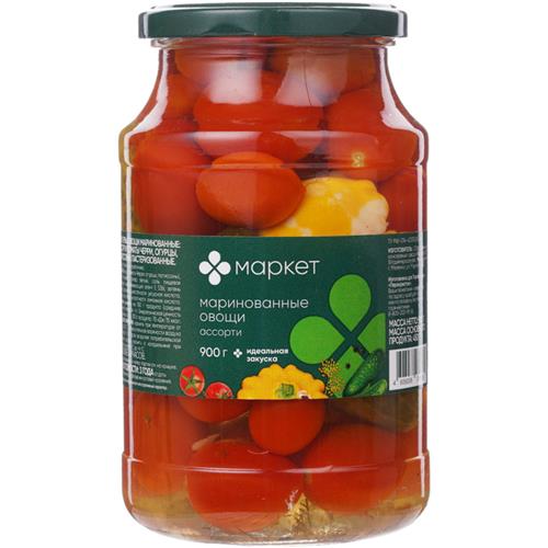 Ассорти овощное Маркет Перекрёсток томаты черри огурцы патиссоны, 900г в магазинах Перекресток