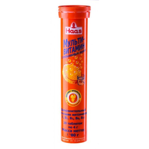 БАД к пище Haas Мультивитамин с апельсиновым вкусом 20 таблеток, 80г в магазинах Перекресток