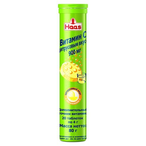 БАД Витамин С 900 мг Цитрусовый вкус ХААС, 80 г (kastd) в магазинах Ашан