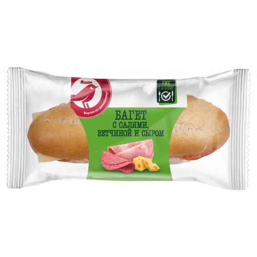 Багет АШАН Красная птица с салями, ветчиной и сыром, 180 г (kastd) в магазинах Ашан