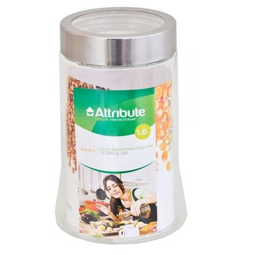 Банка стеклянная Attribute с прозрачной крышкой, 1 л (kastd) в магазинах Ашан