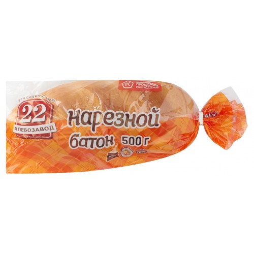 Батон пшеничный Хлебозавод Ė22 нарезной, 500 г (kastd) в магазинах Ашан