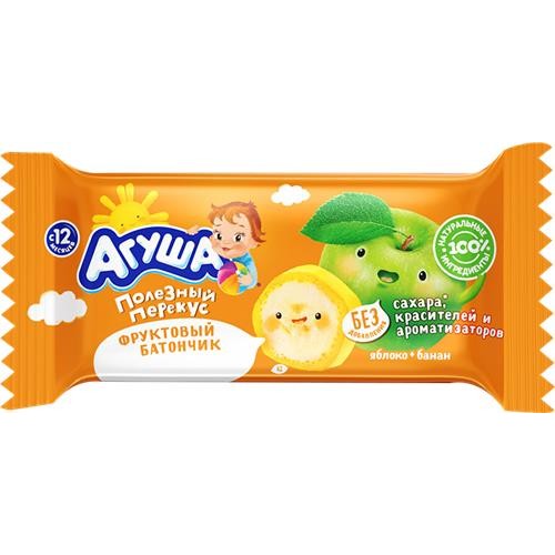 Батончик фруктовый АГУША Полезный перекус, Яблоко, банан, с 12 месяцев, 15г в магазинах Лента