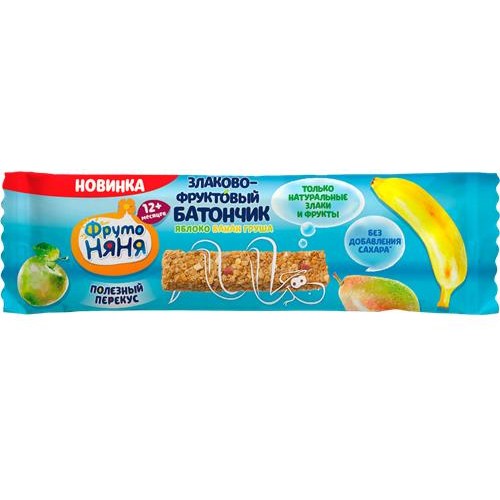 Батончик фруктово-злаковый ФРУТОНЯНЯ Яблоко, банан, груша, с 12 месяцев, 25г в магазинах Лента