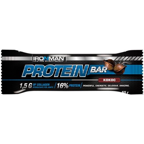 Батончик протеиновый IRONMAN Protein Bar Кокос, в темной глазури, с коллагеном, 50г в магазинах Лента