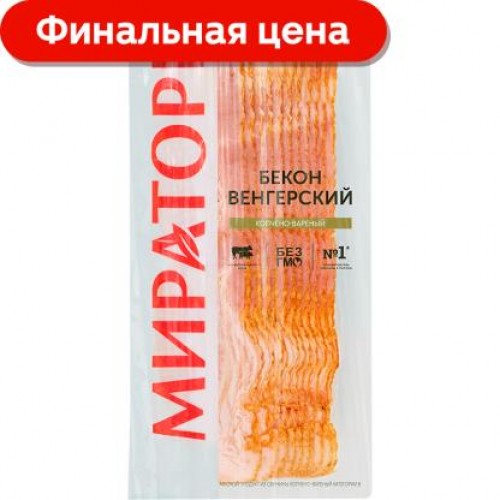 Бекон Мираторг Венгерский копчено-вареный нарезка 300г в магазинах Магнит