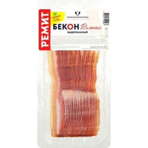 Бекон Ремит вяленый выдержанный нарезка 55г в магазинах Магнит