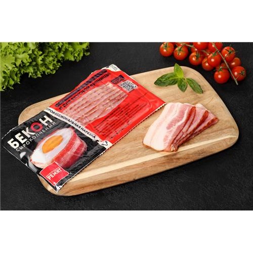 Сырокопченый бекон в нарезке РЕМИТ – прекрасное дополнение к вашему столу. Этот изысканный деликатес станет отличным дополнением к завтраку, а также идеальным украшением праздничного стола. Создайте восхитительные горячие бутерброды, используя этот бекон. Поджарьте его на сухой сковороде, затем аккуратно положите на ломтик подсушенного хлеба. Дополните ваше блюдо помидоркой и веточкой свежей зелени - и ваш вкусный завтрак готов! Теперь вы можете наслаждаться этим блюдом со скидкой, покупая его в по карте покупателя. Порадуйте себя и своих близких этим вкусным и сытным блюдом!
