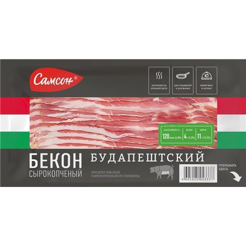 Бекон сырокопченый САМСОН Будапештский, нарезка, 140г в магазинах Лента