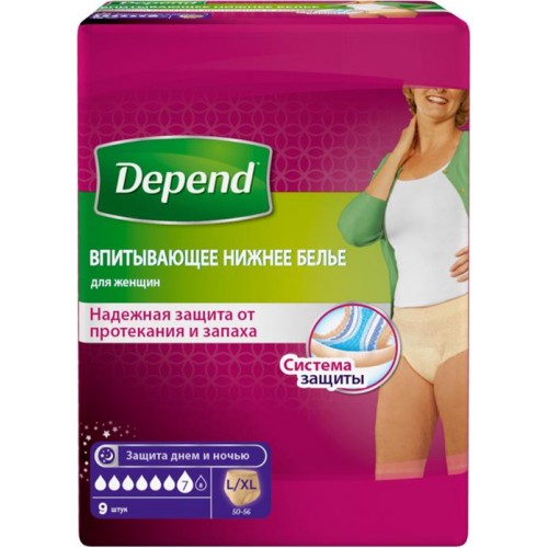 Белье впитывающее женское DEPEND L/XL, 9шт в магазинах Лента