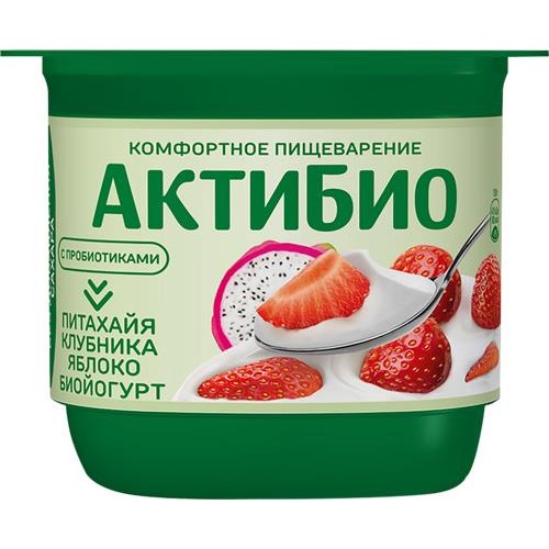 Биойогурт АКТИБИО Клубника, яблоко, питахайя без сахара 2,9%, без змж, 130г в магазинах Лента