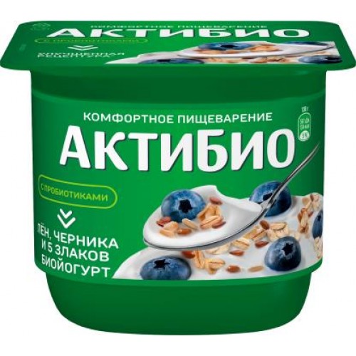Биойогурт Актибио с черникой. 5 злаками и семенами льна 3% 130г в магазинах Магнит