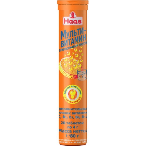 Биологически активная добавка HAAS Мультивитамин, с апельсиновым вкусом, в таблетках, 20шт в магазинах Лента