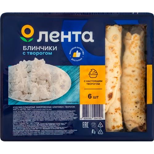 Блинчики ЛЕНТА с творогом, 360г в магазинах Лента