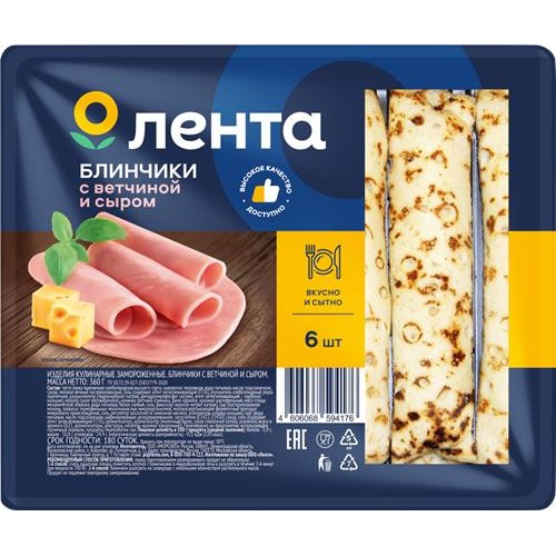 Блинчики ЛЕНТА с ветчиной и сыром, 360г в магазинах Лента