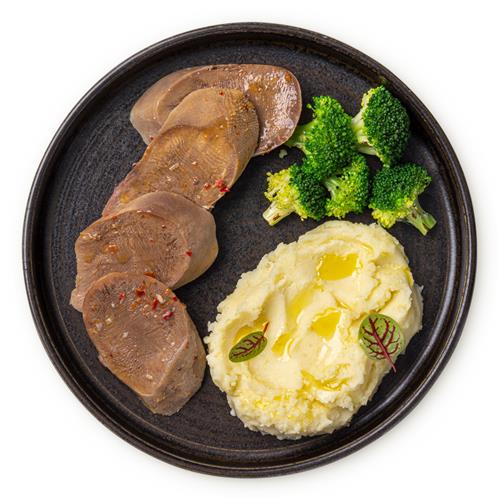 Блюдо для запекания Язык говяжий в азиатском соусе с картофельным пюре и брокколи Шеф Перекрёсток, 580г в магазинах Перекресток