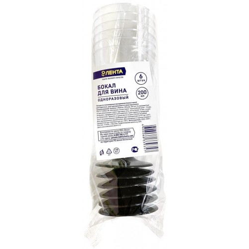 Бокал одноразовый для вина ЛЕНТА 200мл, 6шт в магазинах Лента