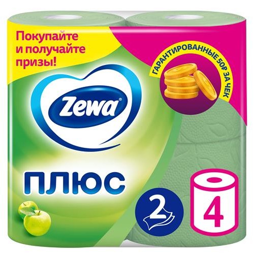 Бумага туалетная Zewa Плюс Яблоко, 2 слоя, 4 рулона (kastd) в магазинах Ашан