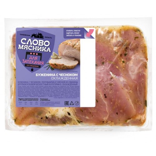 Буженина Слово мясника с чесноком охлажденная, вес (kastd) в магазинах Ашан