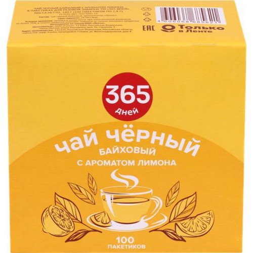 Чай черный 365 ДНЕЙ байховый с ароматом лимона, 100пак в магазинах Лента