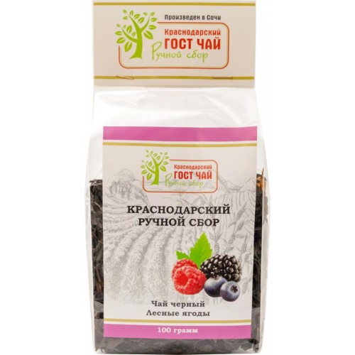 Чай черный КРАСНОДАРСКИЙ ГОСТ ЧАЙ РУЧНОЙ СБОР с лесными ягодами байховый, листовой, 100г в магазинах Лента