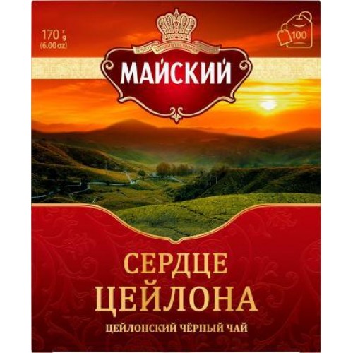 Название товара: Чай чёрный Майский классический «Сердце Цейлона», 100 пакетиков.