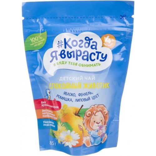 Чай КОГДА Я ВЫРАСТУ Спокойный животик, Яблоко, фенхель, ромашка и липовый цвет, с 4 месяцев, 85г в магазинах Лента