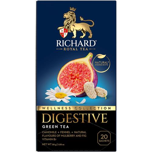 Чай Richard Велнес Коллекшн Дижестив зелёный с ароматом инжира/шелковицы/ромашкой/фенхелем/кусочками черники, 20х1,5г в магазинах Перекресток