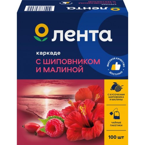 Чайный напиток ЛЕНТА на основе каркадэ с малиной и шиповником, 100пак в магазинах Лента
