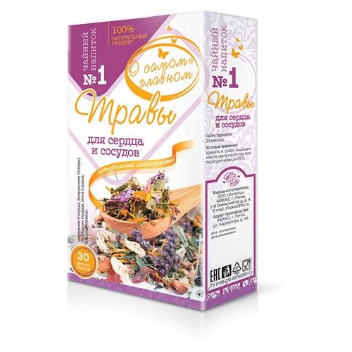 Чайный напиток О Самом Главном Ė 1 Травы для сердца и сосудов, 30 фильтр пакетов (kastd) в магазинах Ашан