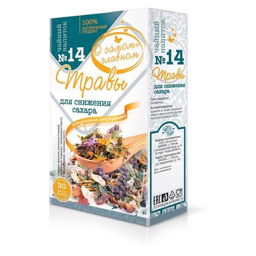Чайный напиток О Самом Главном Ė 14 Травы для Снижения Сахара, 30 фильтр пакетов (kastd) в магазинах Ашан