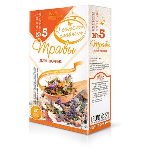 Чайный напиток О Самом Главном Ė 5 Травы для Почек, 30 фильтр пакетов (kastd) в магазинах Ашан