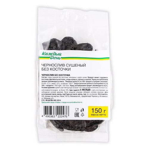 Чернослив Каждый день сушеный без косточек, 150 г (kastd) в магазинах Ашан