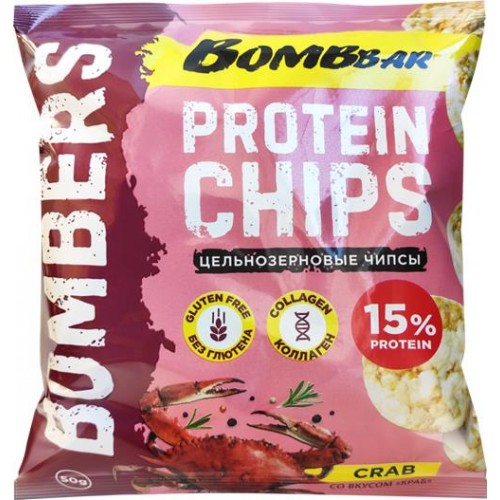 Чипсы цельнозерновые протеиновые BOMBBAR со вкусом краб, 50г в магазинах Лента