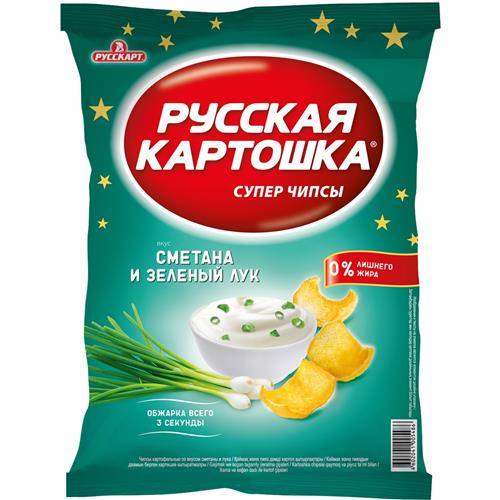 Чипсы картофельные Русская картошка со вкусом сметаны и лука 80 гр в магазинах Пятерочка