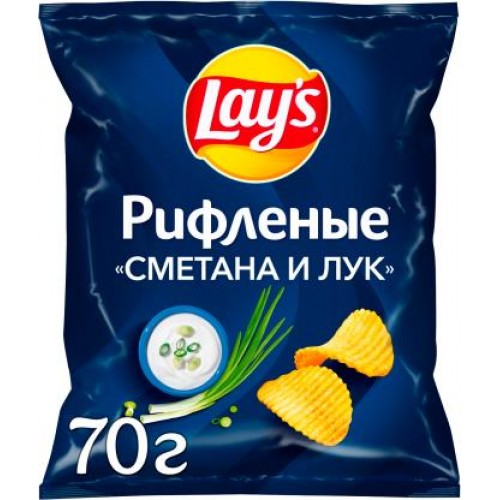 Чипсы Lays рифленые сметана-лук 70г в магазинах Магнит