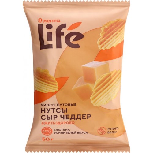 Чипсы нутовые ЛЕНТА LIFE Сыр Чеддер, 50г в магазинах Лента