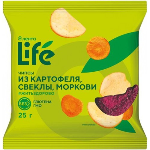 Чипсы овощные хрустящие ЛЕНТА LIFE Картофель, свекла и морковь, 25г в магазинах Лента