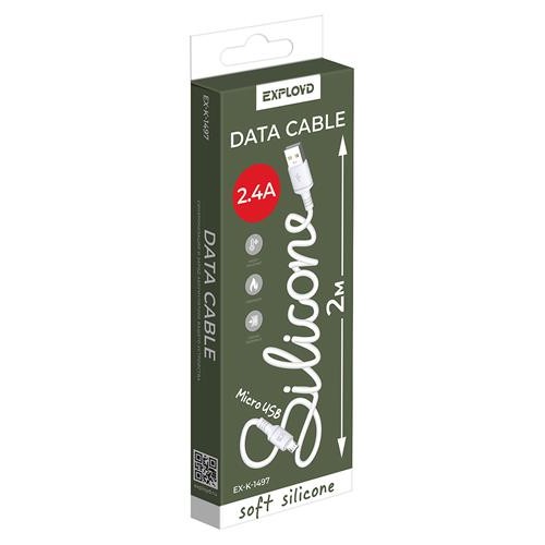 Дата-кабель Exployd EX1497 MicroUSB 2.4А белый, 2 м (kastd) в магазинах Ашан
