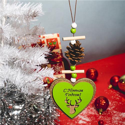 Декорация выполнена из дерева, полиэстера и натуральных шишек, что делает ее прочной и долговечной. Размер составляет 8х8х25 см, а толщина - всего 0,8 см, благодаря чему украшение легко разместится на елке или станет изящным дополнением к домашнему декору.