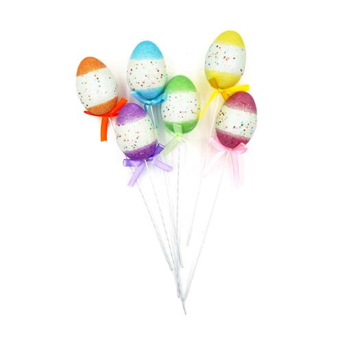 Описание: Набор пасхальных декораций поможет вам стильно и ярко оформить интерьер к светлому празднику Пасхи. В комплекте вы найдете 6 разноцветных декоративных яиц, украшенных бантиком и установленных на изящной палочке.
