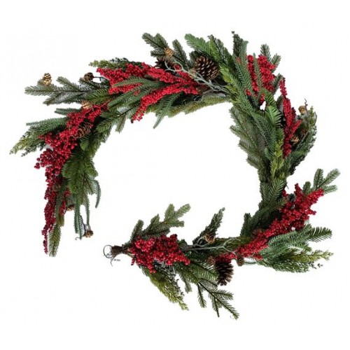 Декорация рождественская Гирлянда еловая с ягодами, 180 см (kastd) в магазинах Ашан