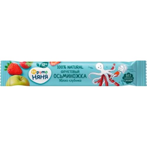 Десерт ФрутоНяня Фруктовые кусочки из яблок и клубники 16 г - это натуральное лакомство в виде забавного осьминога, которое обязательно придется по вкусу маленьким сладкоежкам. Каждый кусочек герметично упакован, что позволяет взять его с собой на прогулку или в путешествие. Не содержит искусственных красителей, ароматизаторов и ГМО, а также сахара. Фруктовые кусочки изготовлены по современным технологиям, позволяющим сохранить все полезные свойства натуральных фруктов и ягод: витамины, минералы и прочие элементы, необходимые для здорового развития вашего малыша.