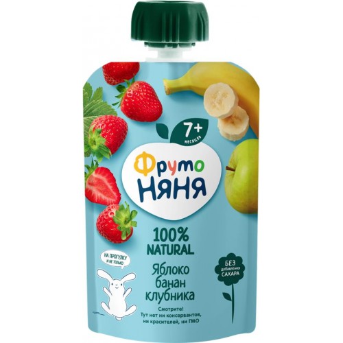 Десерт ФРУТОНЯНЯ из яблок бананов и клубники, с 7 месяцев, 90г в магазинах Лента